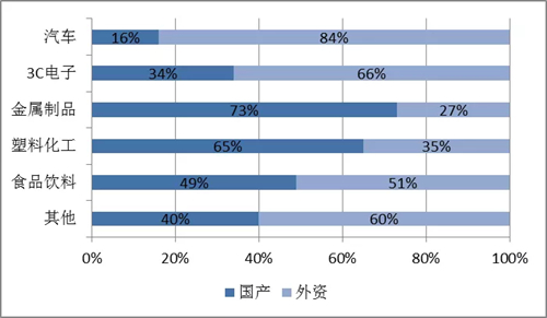 圖3 2018年國產和外資機器人本體應用占比,資料來源:中國電子學會整理